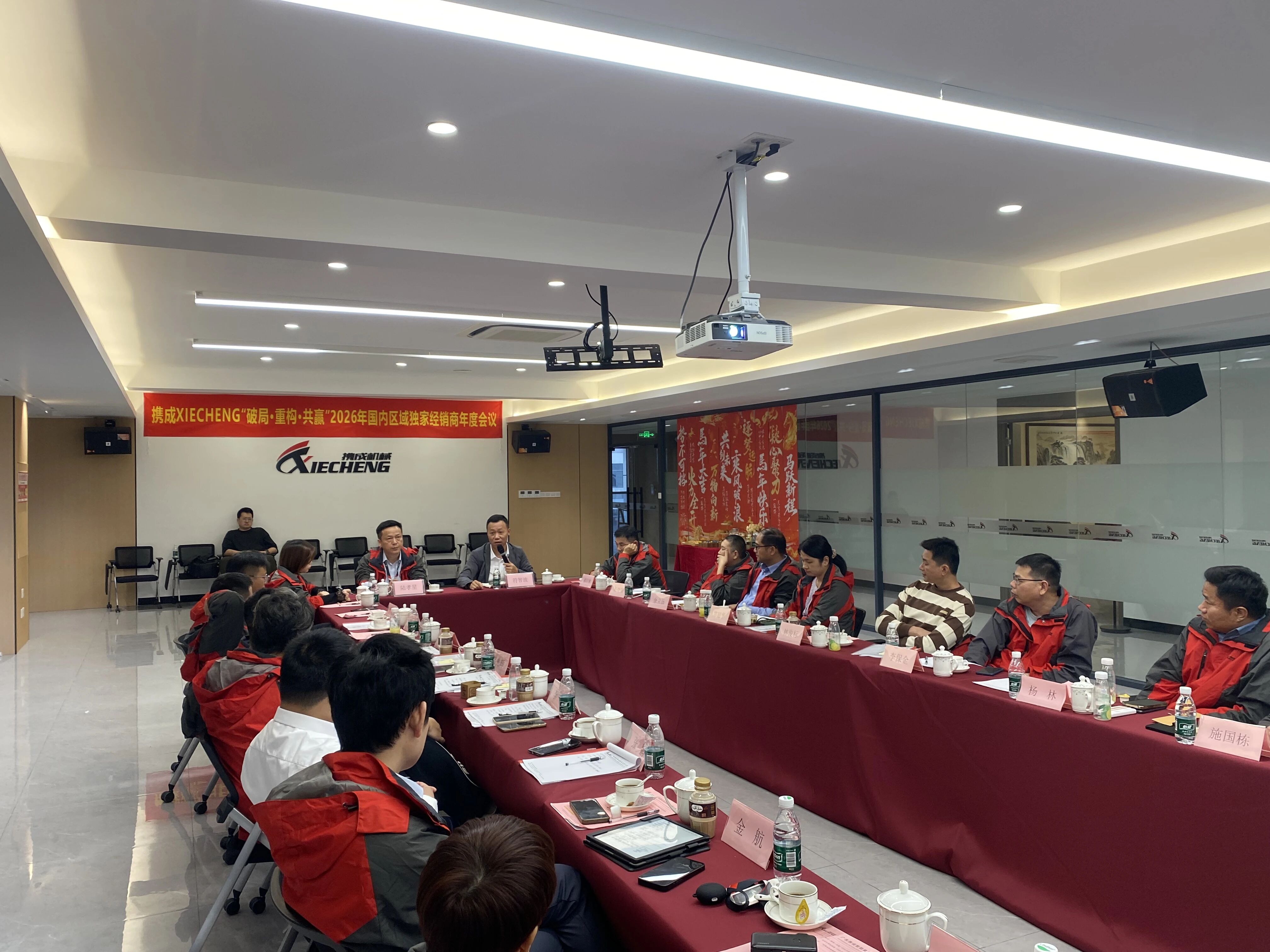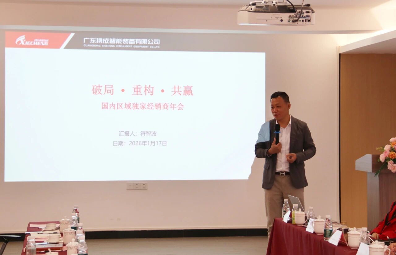 El 17 de enero de 2026, la Conferencia Anual de Distribuidores Regionales Exclusivos "Avance · Reestructuración · Ganar-Ganar" 2026 de Xiecheng se celebró grandiosamente en la sala de conferencias multimedia del cuarto piso de Equipo inteligente Co., Ltd. de Guangdong Xiecheng El Gerente General de Xiecheng, Sr. Fu Zhibo, la Directora de Marketing, Sra. Tan Yinxiang, el Gerente General Adjunto del Centro de Fabricación, Sr. Lu Xiaoxing, jefes de departamentos clave y representantes de distribuidores exclusivos de las principales regiones de todo el país se reunieron para discutir nuevas estrategias de desarrollo y abrir conjuntamente un nuevo capítulo de cooperación.