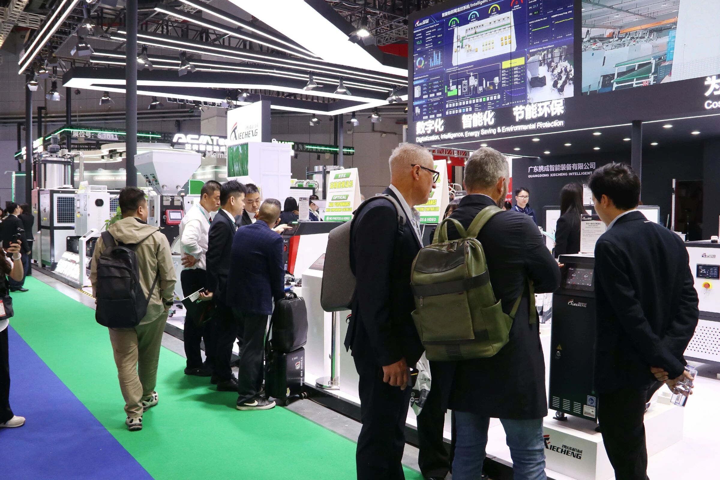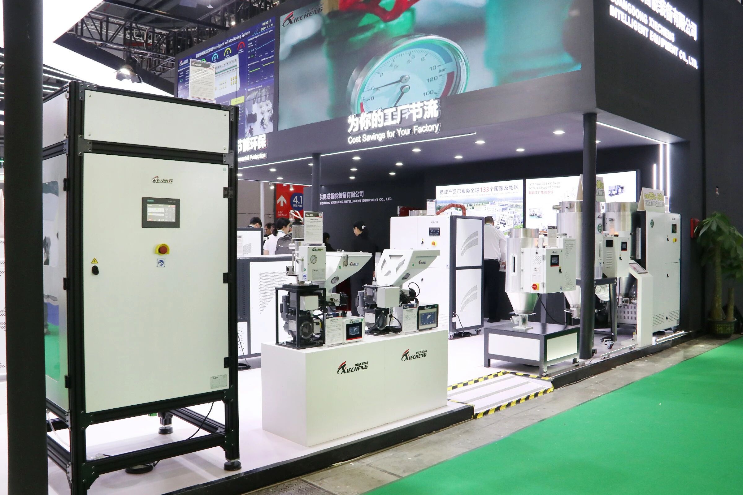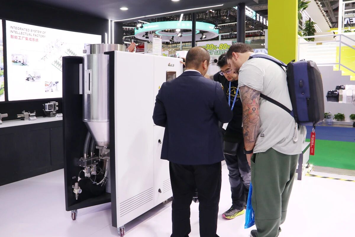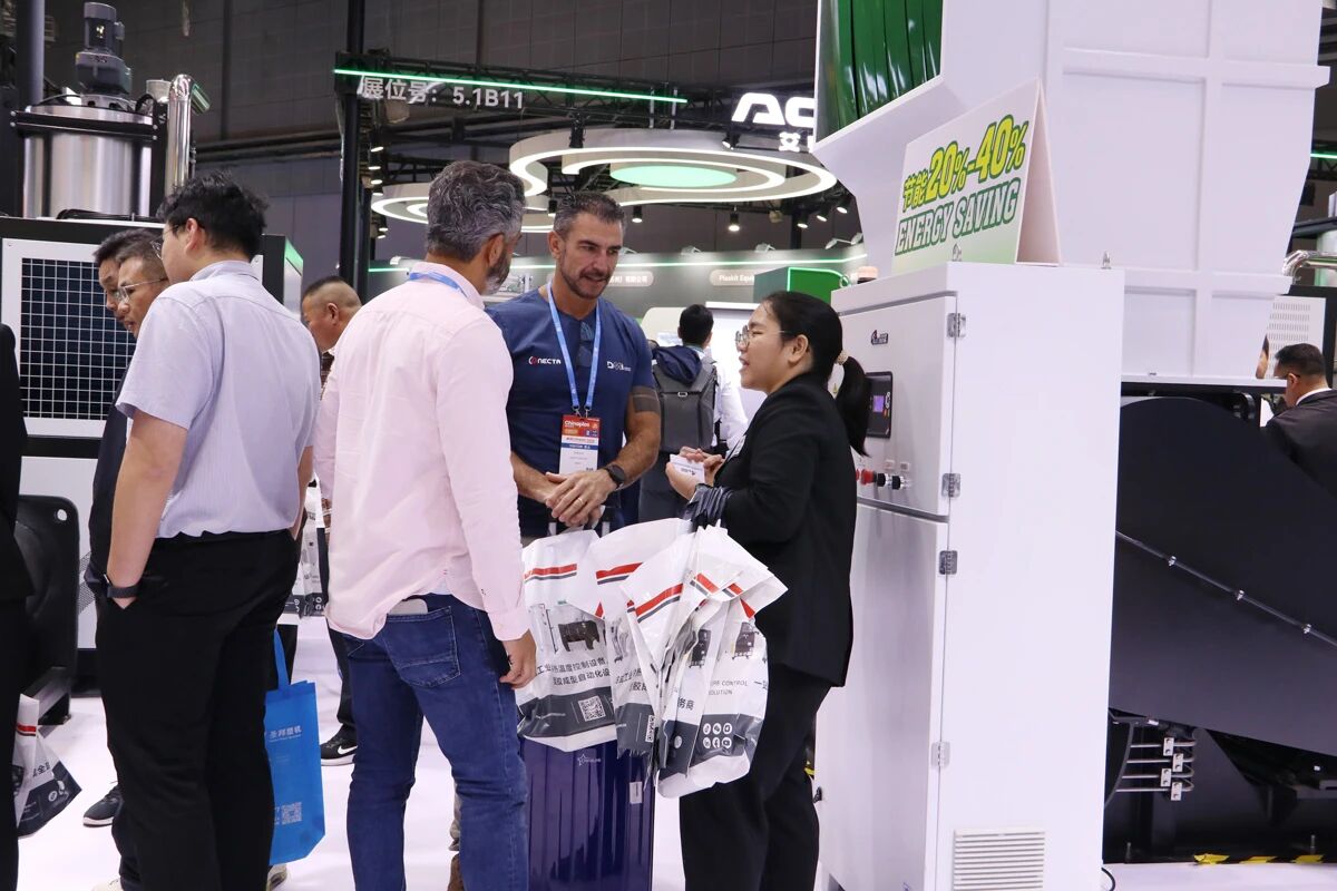 Más allá del equipo independiente, XIECHENG Soluciones integradas de sistemas de procesamiento de plásticos. se convirtió en un punto culminante importante. Muchos visitantes participaron en debates en profundidad sobre la integración de fábricas inteligentes., reconocer las capacidades de XIECHENG en digitalización y automatización como altamente alineadas con las necesidades actuales de transformación de la industria.