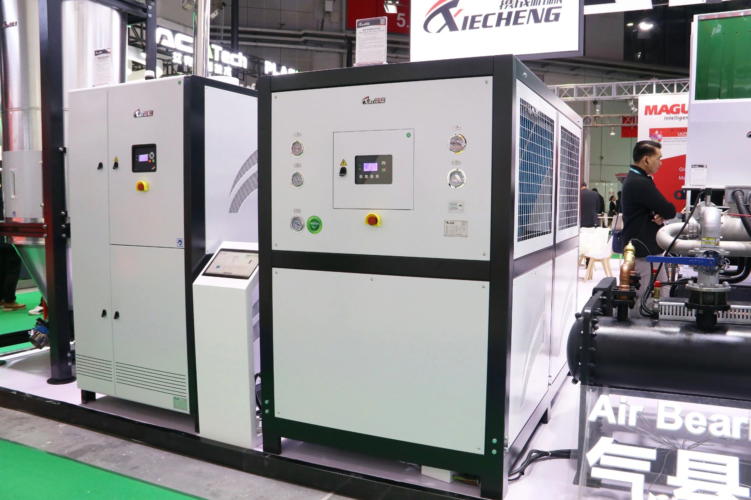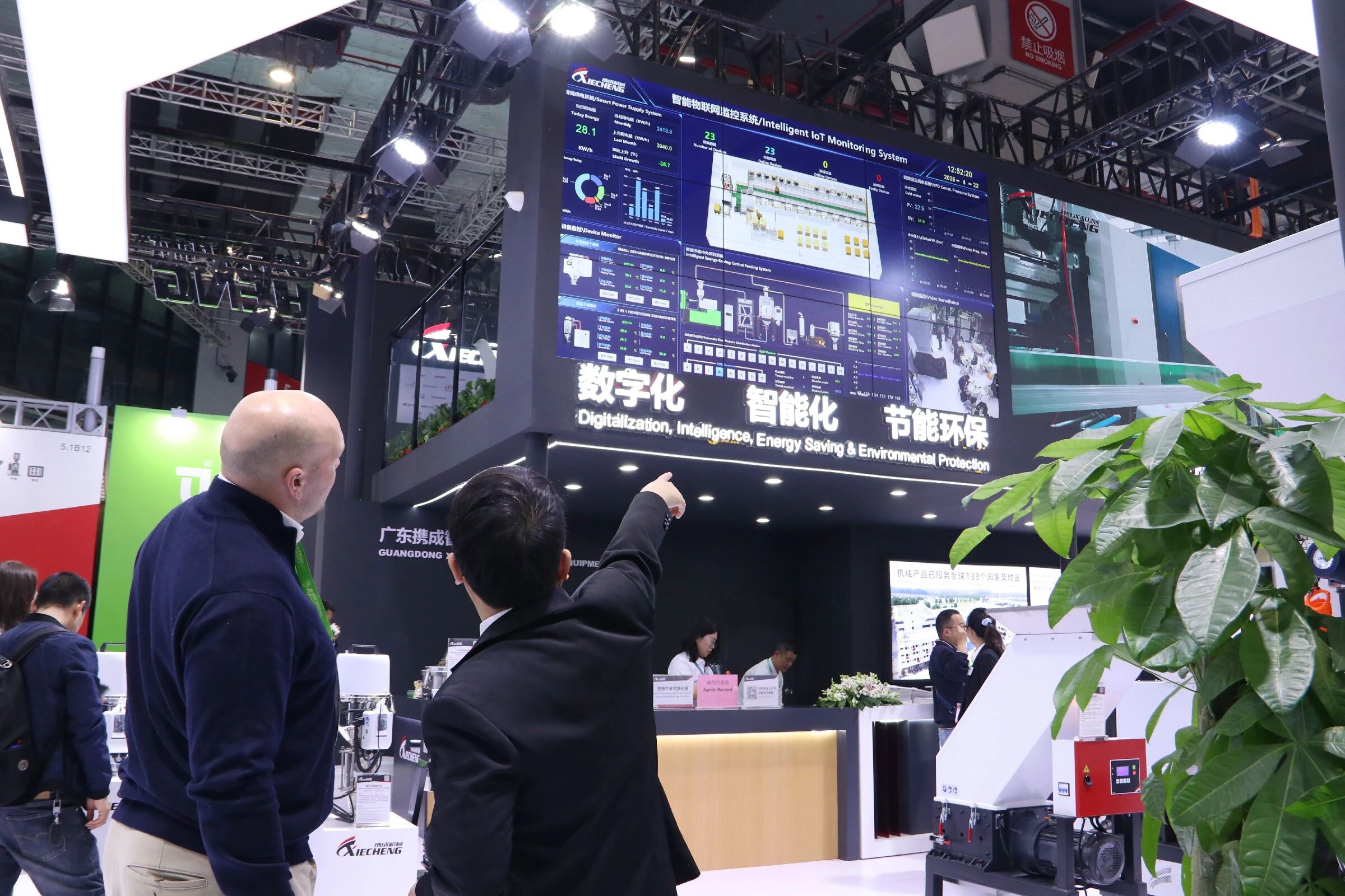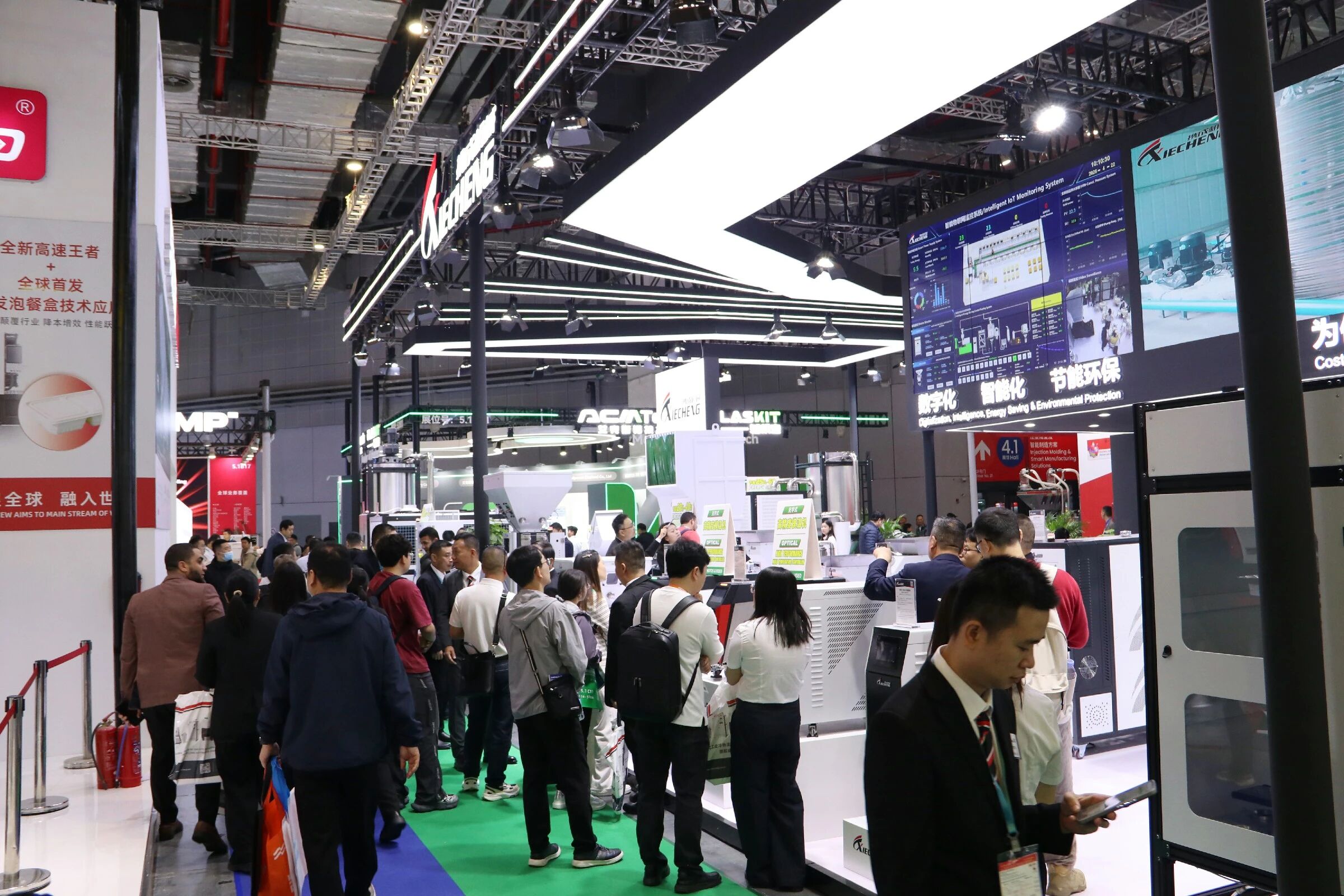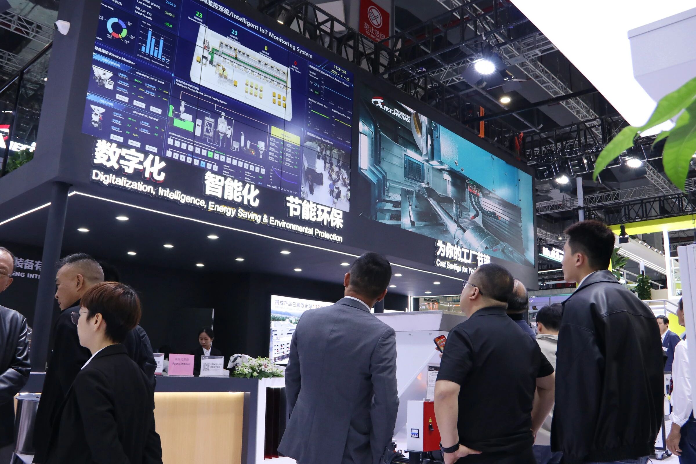 Más allá del equipo independiente, XIECHENG Soluciones integradas de sistemas de procesamiento de plásticos. se convirtió en un punto culminante importante. Muchos visitantes participaron en debates en profundidad sobre la integración de fábricas inteligentes., reconocer las capacidades de XIECHENG en digitalización y automatización como altamente alineadas con las necesidades actuales de transformación de la industria.