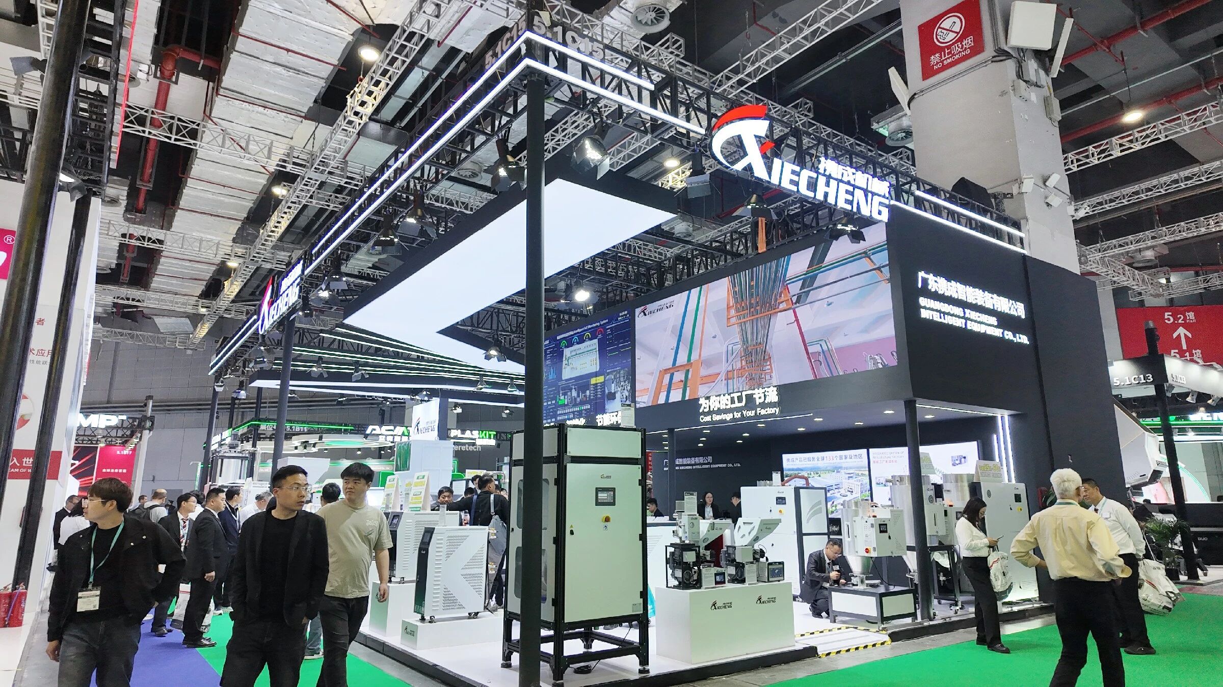 Como fabricante dedicado de equipos auxiliares para plásticos, Guangdong Xiecheng Intelligent Equipment Co., Ltd. (XIECHENG) presentó un escaparate a gran escala bajo el tema Digitalización, Fabricación inteligente y Eficiencia energética. Con seis líneas de productos principales y múltiples innovaciones de debut global, el stand de XIECHENG permaneció muy activo durante toda la exposición, atrayendo continuas discusiones técnicas y consultas comerciales.