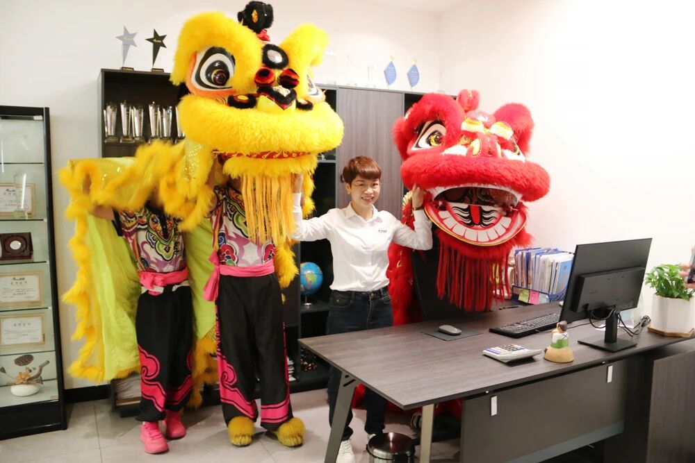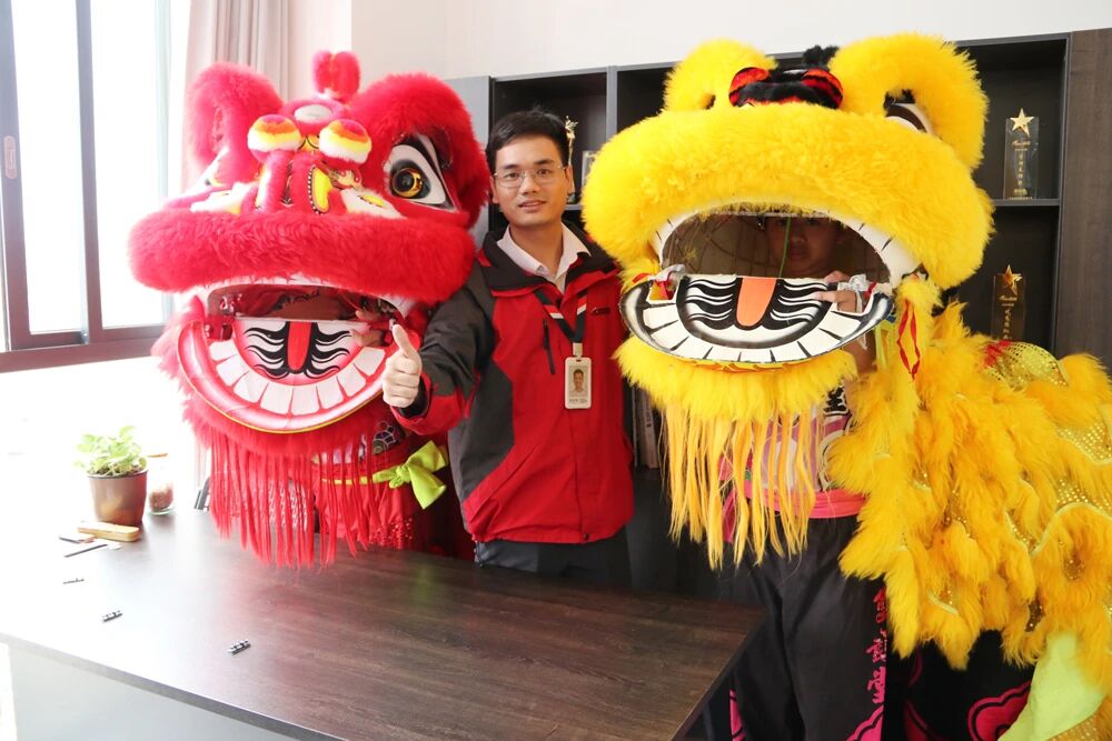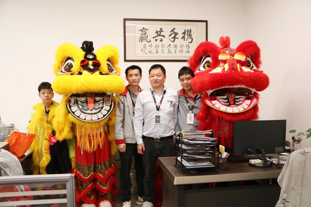 Los leones saltaron enérgicamente al ritmo de resonantes tambores, moviéndose con gracia por todo el campus de la empresa, desde edificios de oficinas hasta talleres de producción, llenando cada rincón de alegría y espíritu festivo.